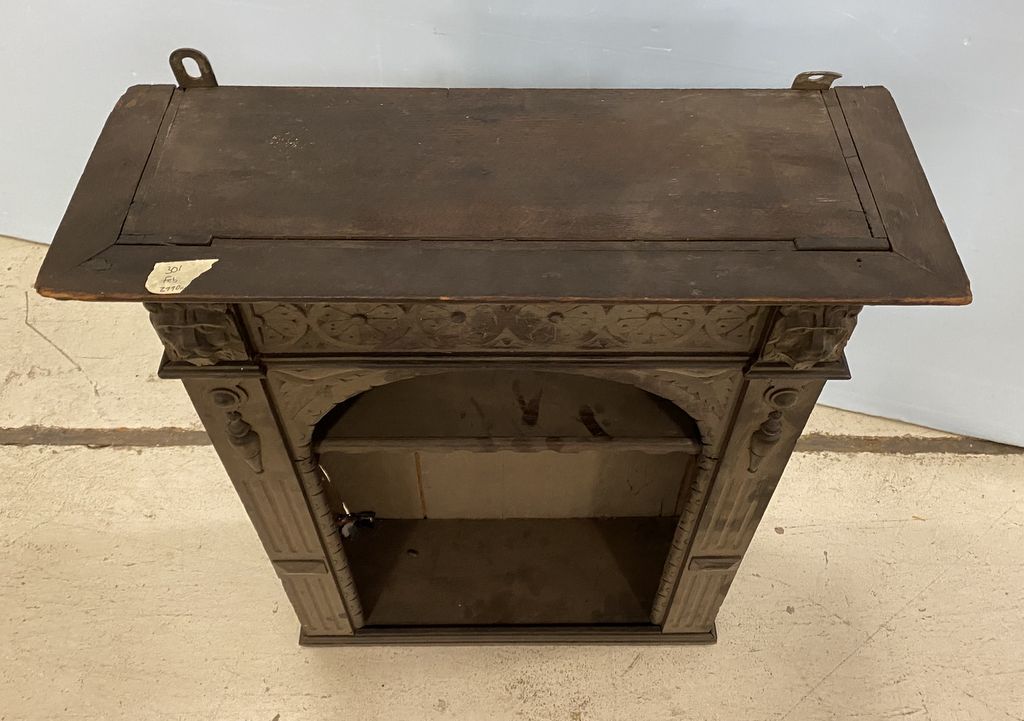 Antique Wall Hanging Cabinet, 27"h., 22"w., 8"d. Location 2nd Row. Antique Wall Hanging Cabinet, 27"h., 22"w., 8"d. Location 2nd Row.