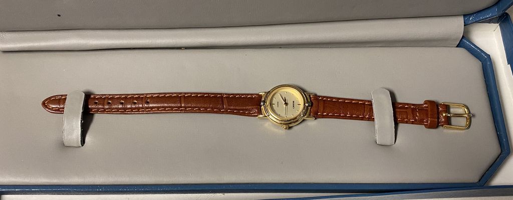 Regency Quartz Ladies Watch, leather band, new in case. Location Front Left Locked Showcase. Regency Quartz Ladies Watch, leather band, new in case. Location Front Left Locked Showcase.