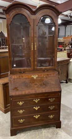 Weiman Furniture Co. Bonnet Top Secretary, beveled glass doors, two piece, needs cleaning, 84"h., 34"w., 19"d. Location 6th Row Weiman Furniture Co. Bonnet Top Secretary, beveled glass doors, two piece, needs cleaning, 84"h., 34"w., 19"d. Location 6th Row