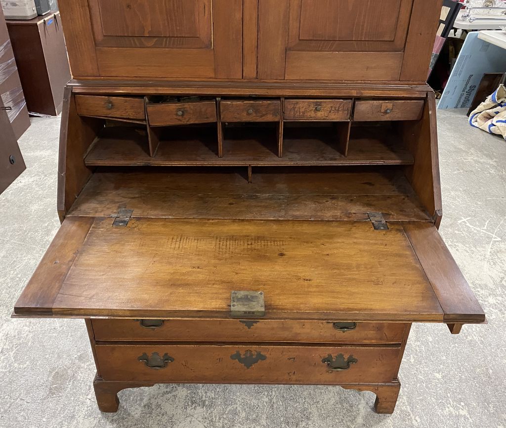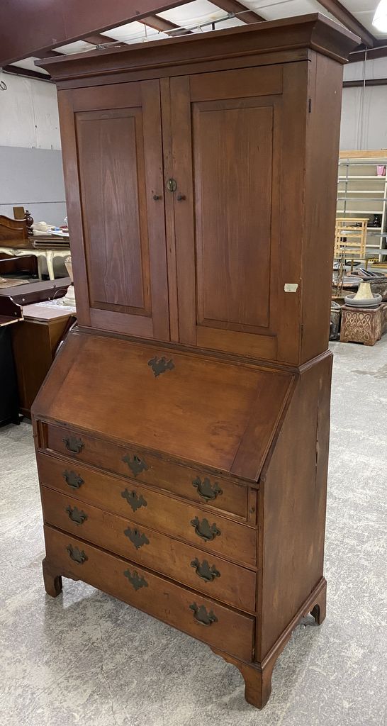 19th Century Chippendale Style Secretary Bookcase, two piece, drop front desk, four drawers, good condition, 79"h., 20"d., 39"w. Location 2nd Row. 19th Century Chippendale Style Secretary Bookcase, two piece, drop front desk, four drawers, good condition, 79"h., 20"d., 39"w. Location 2nd Row.