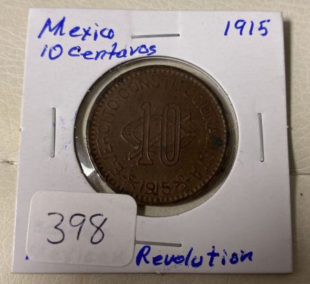 398 1915 10 Centavos Mexican Revolution Era