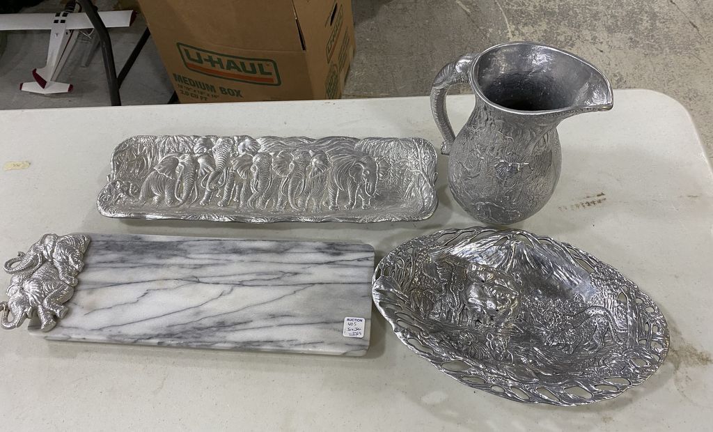 Arthur Court Serving Pieces, Cheese board, Elephant tray, pitcher, platter, figurine. Location 1st Row. Arthur Court Serving Pieces, Cheese board, Elephant tray, pitcher, platter, figurine. Location 1st Row.