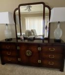 American of Martinsville Double Dresser, with back mirror, has some scratches, Location 6th Row American of Martinsville Double Dresser, with back mirror, has some scratches, Location 6th Row