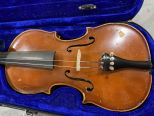 Replica of Stradivarius Violin, soft case, missing string, used condition, has wand, needs work, Grand GVL 1200. Location Right Metal Shelves. Replica of Stradivarius Violin, soft case, missing string, used condition, has wand, needs work, Grand GVL 1200. Location Right Metal Shelves.