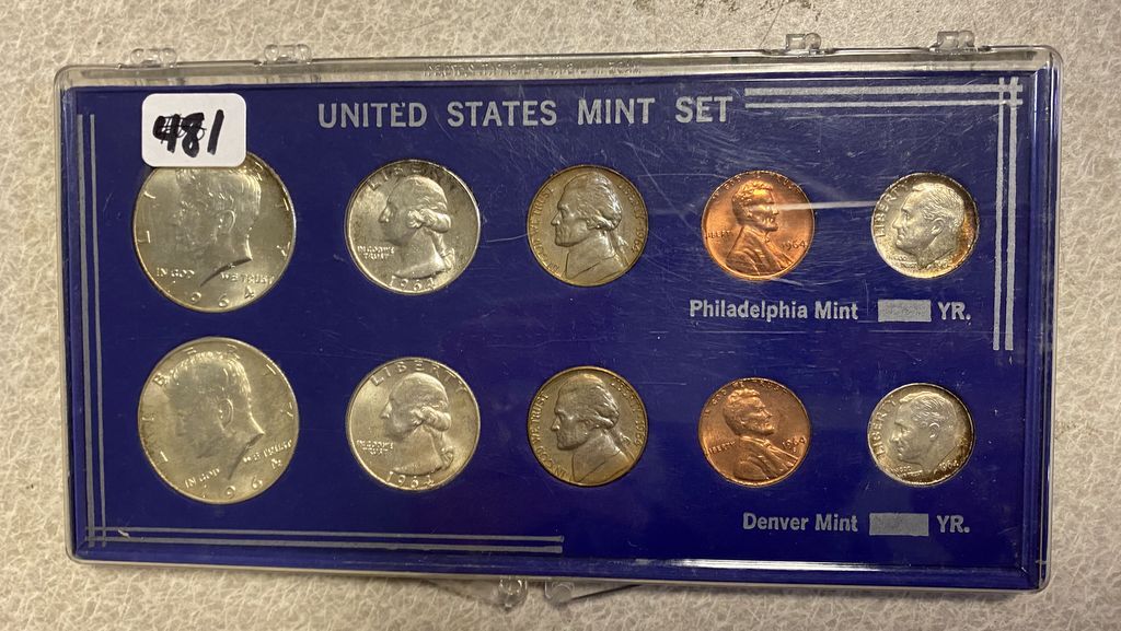 1964 U.S. Mint Set, Philadelphia mint, and Denver mint, plastic case. Location Front Left Locked Showcase. 1964 U.S. Mint Set, Philadelphia mint, and Denver mint, plastic case. Location Front Left Locked Showcase.