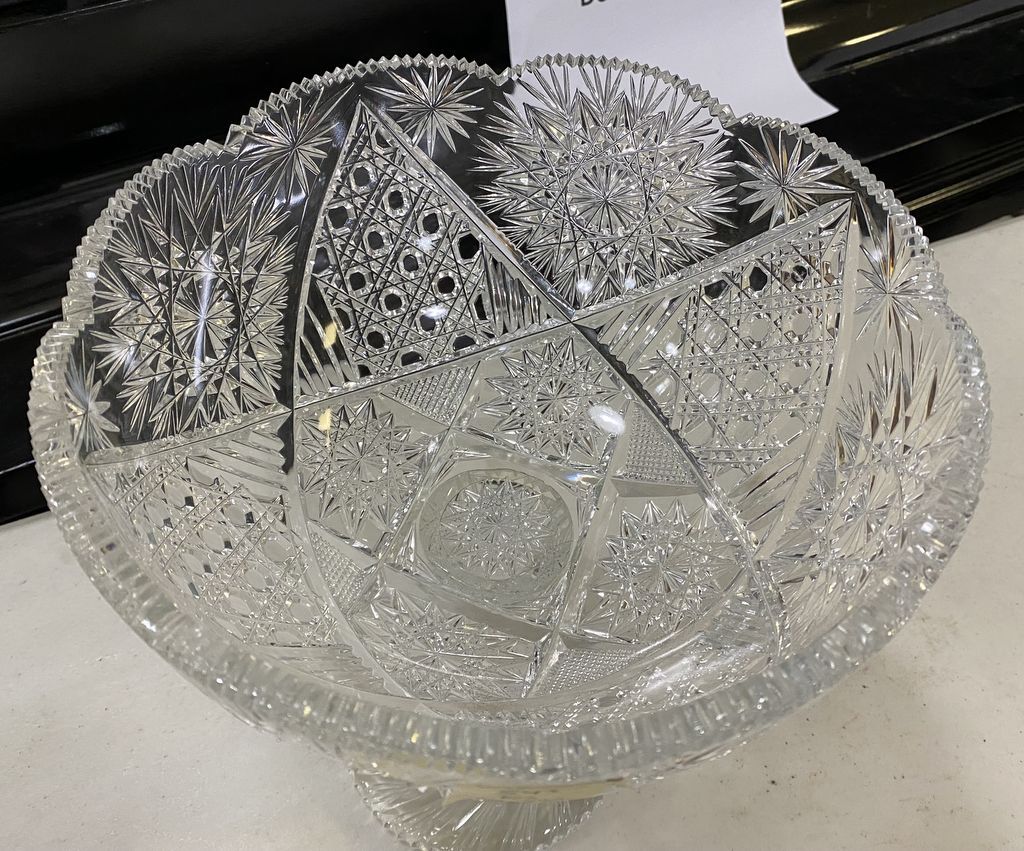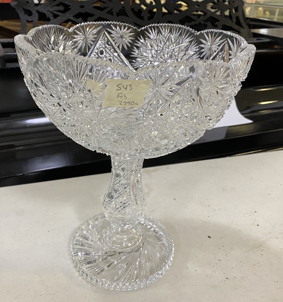 Cut Glass Center Piece Compote, crystal, good condition 12"h., 10"dia. Location Back Metal Cases Cut Glass Center Piece Compote, crystal, good condition 12"h., 10"dia. Location Back Metal Cases