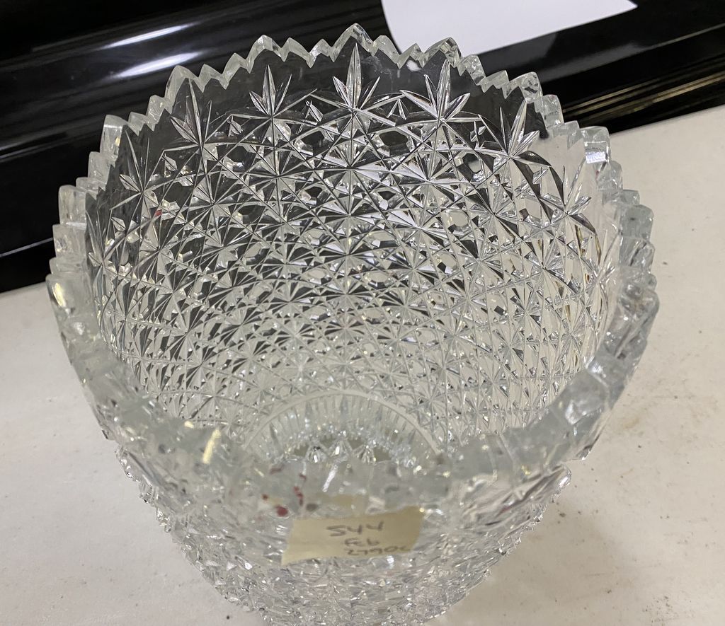 Large Cut Glass Vase, no major chips, 12"h., 6 1/2"dia. Location Back Metal Cases Large Cut Glass Vase, no major chips, 12"h., 6 1/2"dia. Location Back Metal Cases
