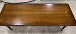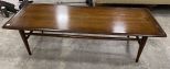 Mid Century Style Coffee Table, has finish wear, 15"h., 54"w. Location 6th Row Mid Century Style Coffee Table, has finish wear, 15"h., 54"w. Location 6th Row