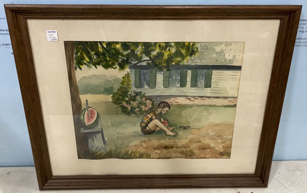 Eileen E. Eppes Watercolor of young Boy, matted, framed, 20"h., 26"w. Location Left Office. Eileen E. Eppes Watercolor of young Boy, matted, framed, 20"h., 26"w. Location Left Office.