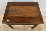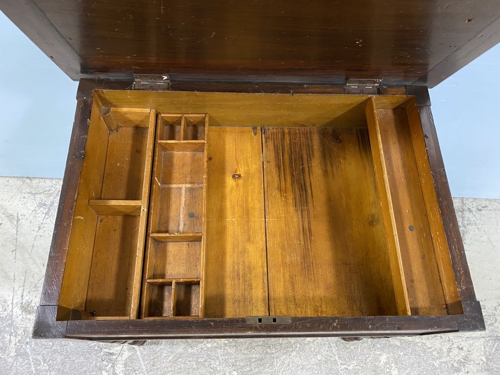Antique Lift Top Work Desk, heavy carved top design, 25"h., 27"w., 19"d. Location 4th Row. Antique Lift Top Work Desk, heavy carved top design, 25"h., 27"w., 19"d. Location 4th Row.