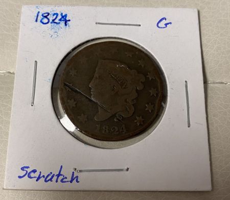 1824 Large Cent, scratch, paper case 1824 Large Cent, scratch, paper case