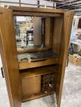 Late 20th Century Bar, two door, mirror, bar set up interior, 65"h., 34"w., 19"d. Location 4th Row Late 20th Century Bar, two door, mirror, bar set up interior, 65"h., 34"w., 19"d. Location 4th Row