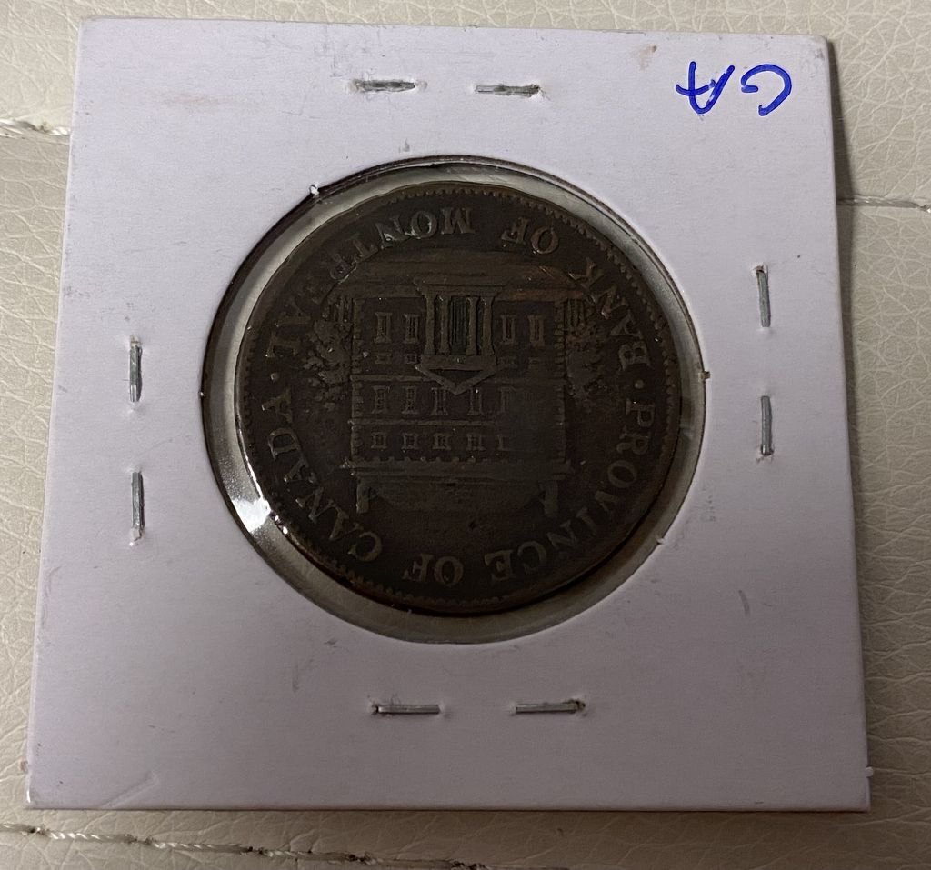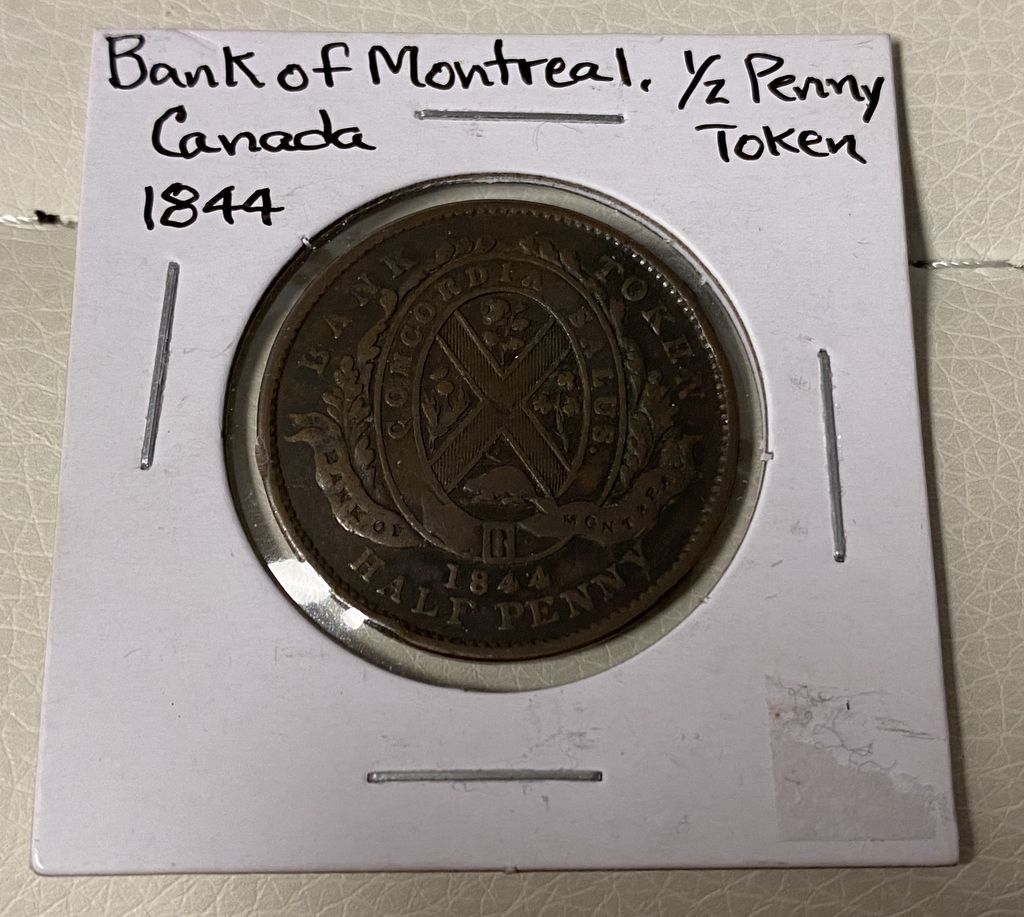 1844 Bank Of Montreal Canada 1/2 Penny Token, paper case 1844 Bank Of Montreal Canada 1/2 Penny Token, paper case