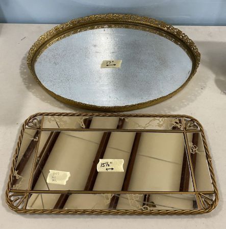 Two Mirror Vanity Plateau Mirrors Trays, one is 17"w., and 15 1/2"w. Two Mirror Vanity Plateau Mirrors Trays, one is 17"w., and 15 1/2"w.