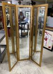 Gold Gilt Tri Dressing Mirror, beveled mirror, 70"h., 17"w. each panel. Location Left Office. Gold Gilt Tri Dressing Mirror, beveled mirror, 70"h., 17"w. each panel. Location Left Office.