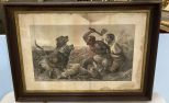 "The Hunted Slaves" Old Lithograph, has moisture damage, frame needs works, 29"h., 39"w. Location Back Wall "The Hunted Slaves" Old Lithograph, has moisture damage, frame needs works, 29"h., 39"w. Location Back Wall