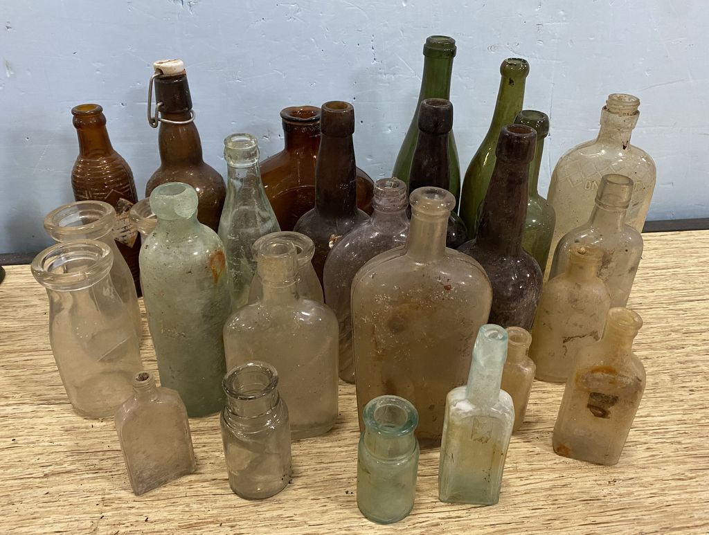 Group of Vintage and Antique Glass Bottles, Bear, medicine, milk. Group of Vintage and Antique Glass Bottles, Bear, medicine, milk.