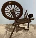 Antique Spinning Wheel, missing some parts, age condition, 36"h., 31"w. Location 5th Row Antique Spinning Wheel, missing some parts, age condition, 36"h., 31"w. Location 5th Row