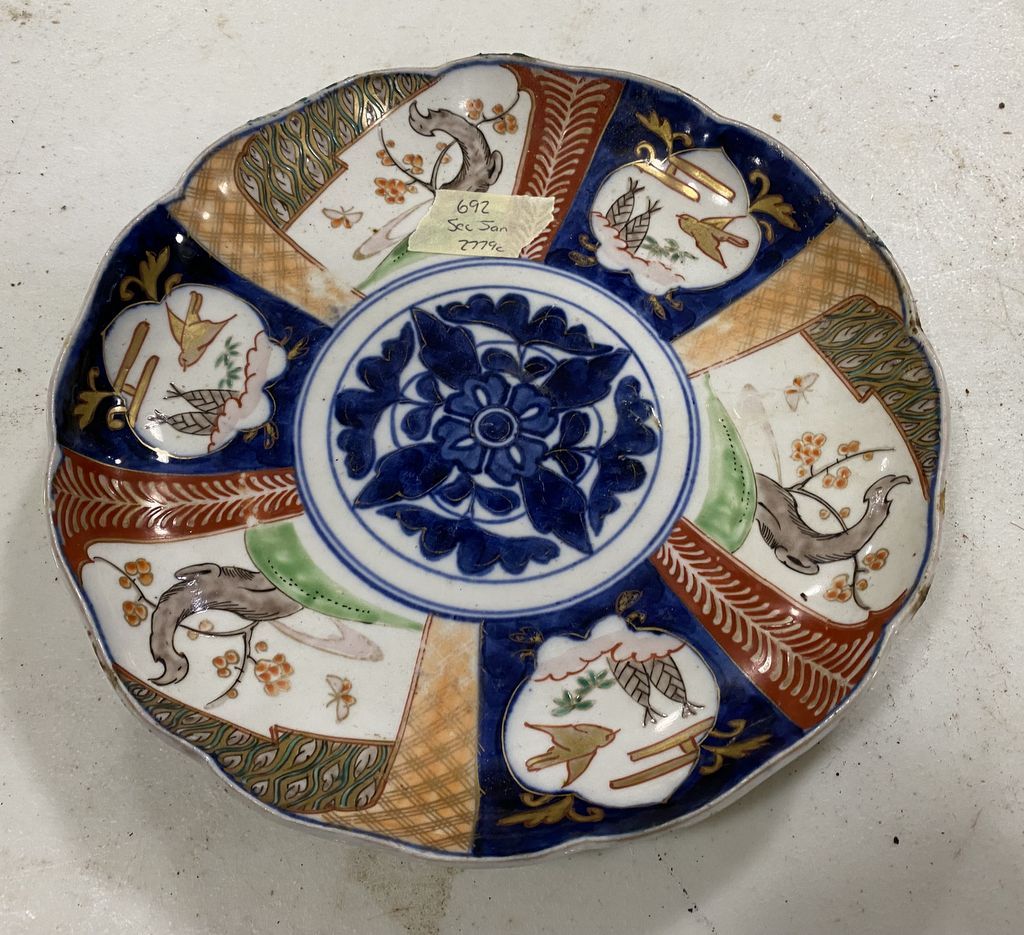 Imari Style Hand Painted Bowl, 10"dia. Location Front Left Glass Showcase. Imari Style Hand Painted Bowl, 10"dia. Location Front Left Glass Showcase.