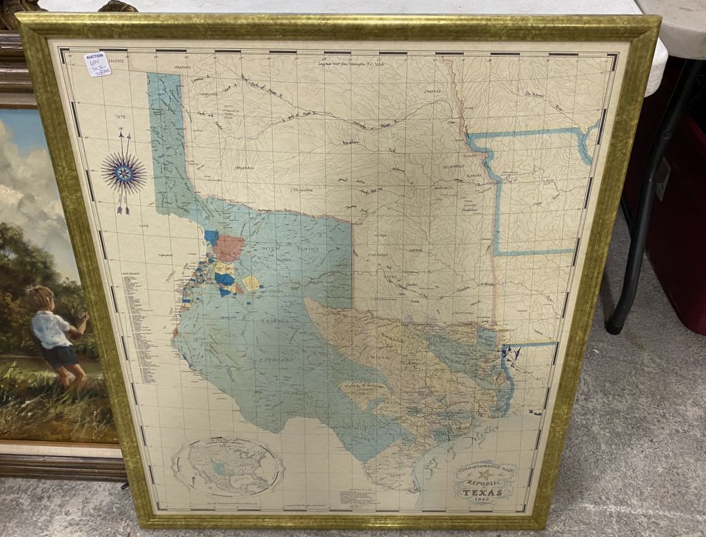 Commemorative Map Republic of Texas, framed, 33"h., 28"w. Location Left Office. Commemorative Map Republic of Texas, framed, 33"h., 28"w. Location Left Office.