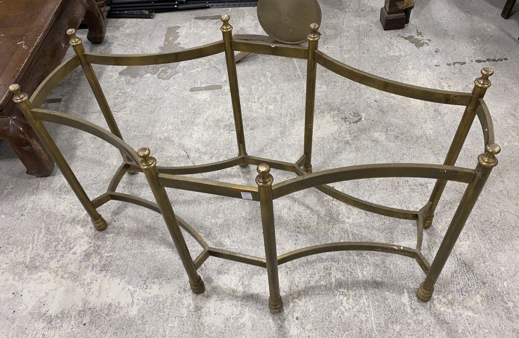 Large Brass Table Base, for glass top, 28"h., 51"w. Location 5th Row Large Brass Table Base, for glass top, 28"h., 51"w. Location 5th Row