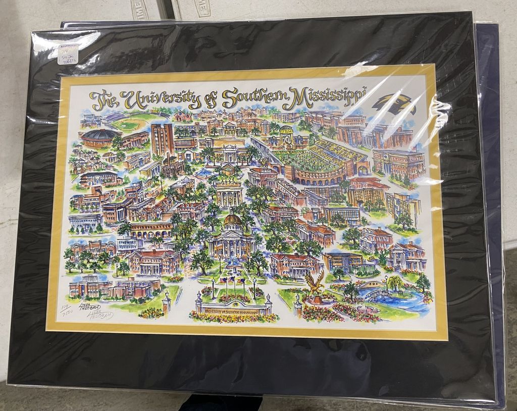 Linda Theobald Numbered University of Southern Mississippi, 109/7500, pencil signed, 16"h. 20"w. Location Back Metal Cases Linda Theobald Numbered University of Southern Mississippi, 109/7500, pencil signed, 16"h. 20"w. Location Back Metal Cases