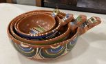 Assorted Sized Mexico Pottery Bowls, four total, hand painted, larger one has rim chip. Location Back Metal Cases Assorted Sized Mexico Pottery Bowls, four total, hand painted, larger one has rim chip. Location Back Metal Cases