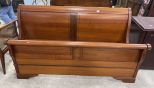 Queen Cherry Sleigh Bed, some scratches on finish, has rails. Location Right Side of Room Wall. Queen Cherry Sleigh Bed, some scratches on finish, has rails. Location Right Side of Room Wall.