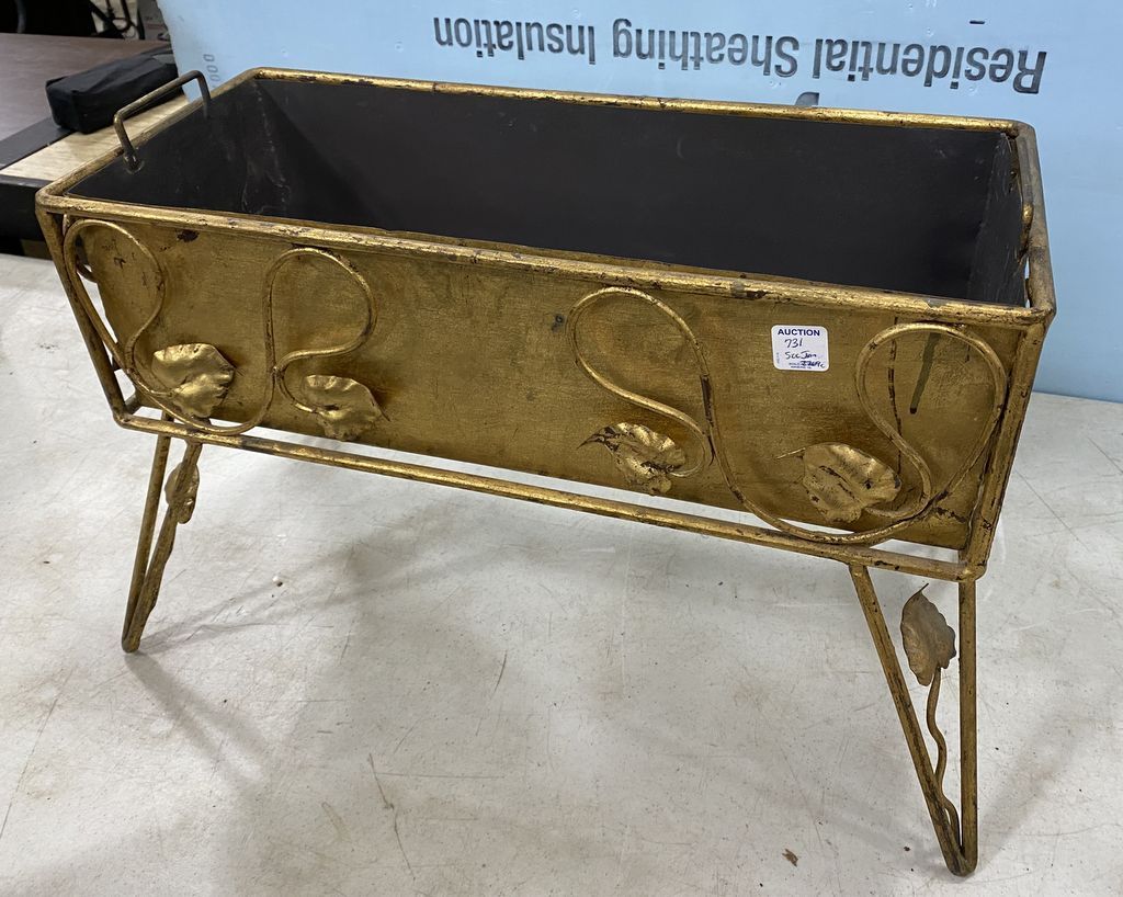 Gold Gilt Metal Planter, leaf, 14"h., 20"w. Location 6th Row Gold Gilt Metal Planter, leaf, 14"h., 20"w. Location 6th Row
