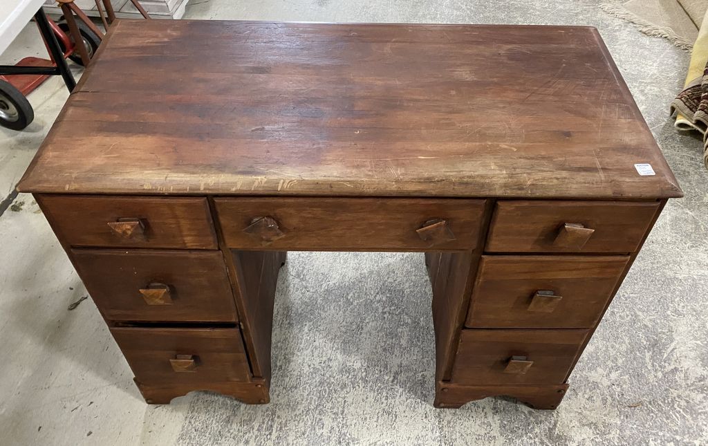 Cherry Kneehole Desk, 7 drawers, late 20th century, used condition, 30"h., 40"w., 20"d. Location 5th Row Cherry Kneehole Desk, 7 drawers, late 20th century, used condition, 30"h., 40"w., 20"d. Location 5th Row