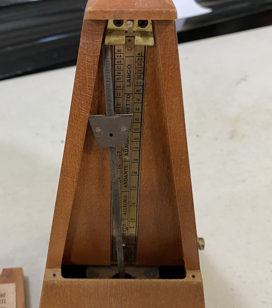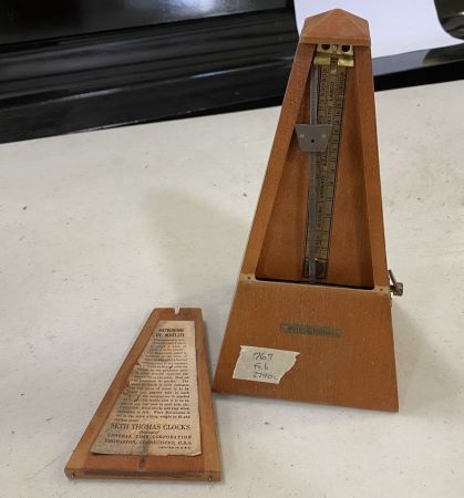 Seth Thomas Metronome, 9"h. Location Front Left Metal Shelves. Seth Thomas Metronome, 9"h. Location Front Left Metal Shelves.