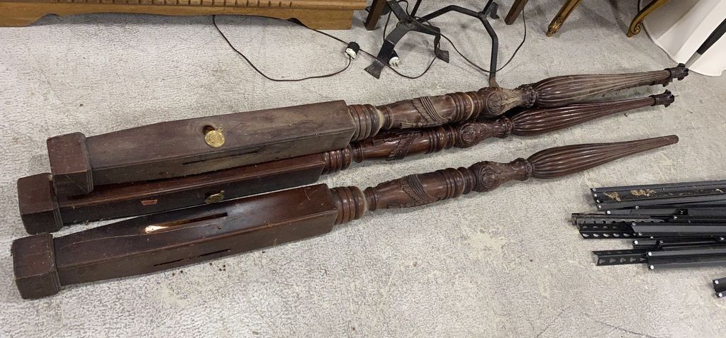 Henredon Furniture Queen Poster Bed, needs to be put back together, worn finish condition, missing bolts Henredon Furniture Queen Poster Bed, needs to be put back together, worn finish condition, missing bolts