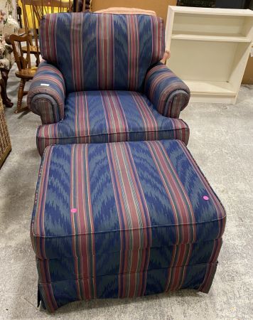 Jamestown Sterling Upholstered Arm Chair and Ottoman, striped pattern. Location 1st Row Jamestown Sterling Upholstered Arm Chair and Ottoman, striped pattern. Location 1st Row
