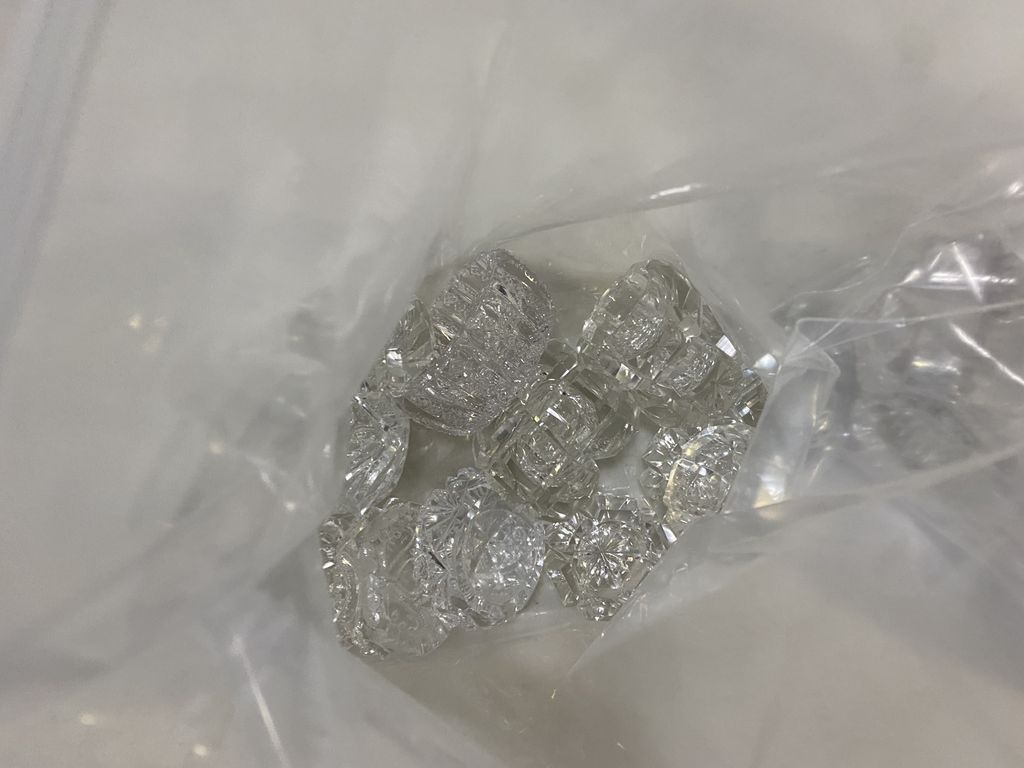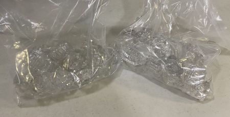 Two Bags of Etched Glass Salts, Location Back Metal Cases Two Bags of Etched Glass Salts, Location Back Metal Cases