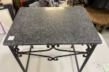 Small Iron Marble Top Side Table, 19"h., 18"w. Location 6th Row Small Iron Marble Top Side Table, 19"h., 18"w. Location 6th Row