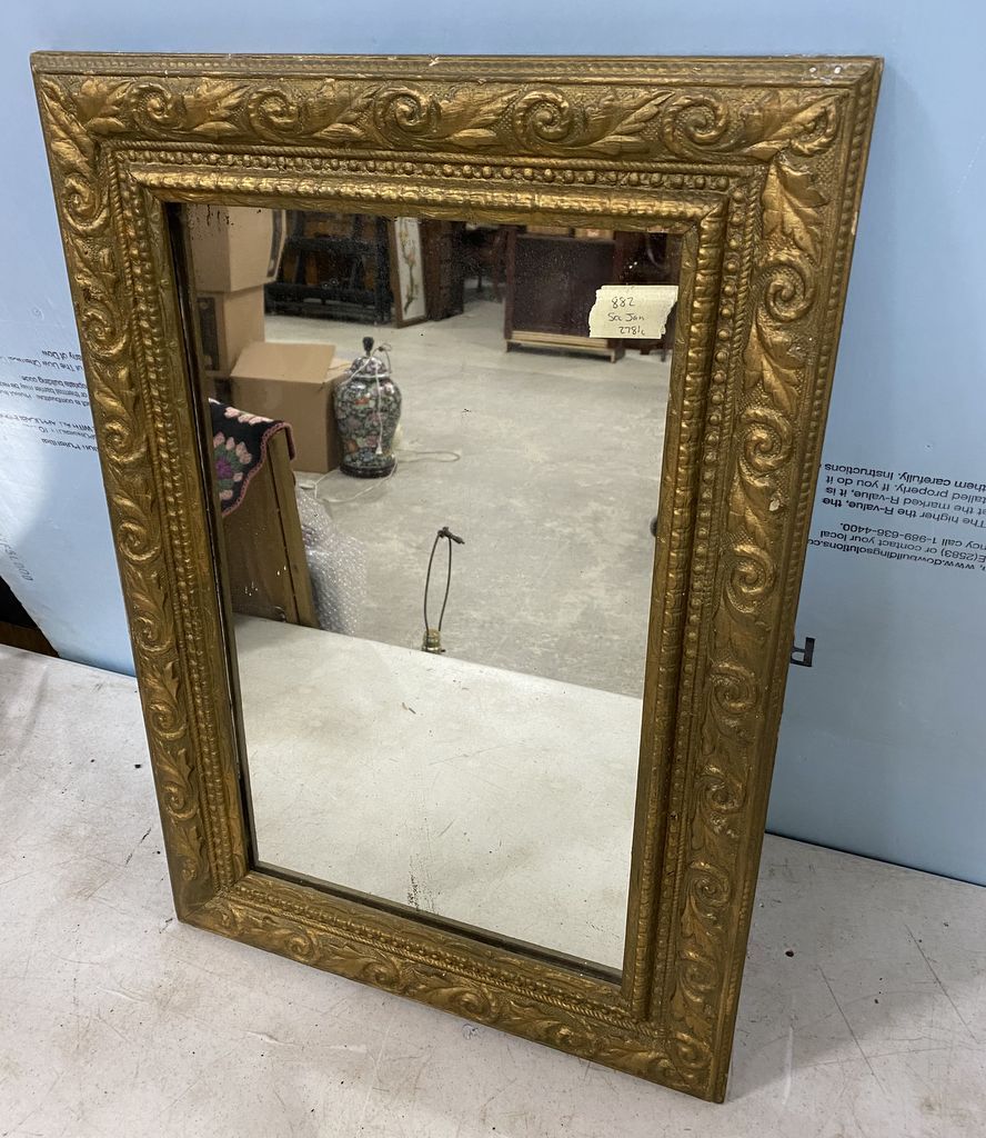 Small Gold Gilt Rectangle Mirror, 25"h., 18"w. Location Back Wall Small Gold Gilt Rectangle Mirror, 25"h., 18"w. Location Back Wall