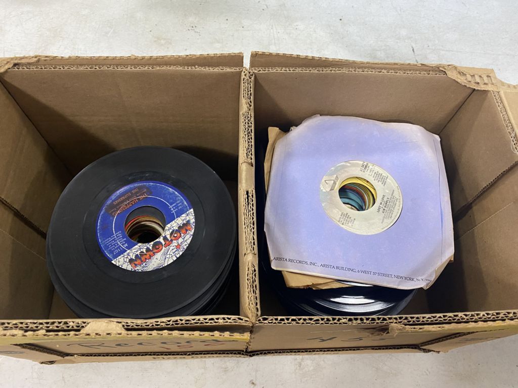 150 7" Records, assorted styled music. Location Front Left Black Metal Shelves. 150 7" Records, assorted styled music. Location Front Left Black Metal Shelves.