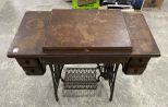 Early 20th Century Sewing Cabinet, includes sewing machine, exterior is worn. Location 5th Row Early 20th Century Sewing Cabinet, includes sewing machine, exterior is worn. Location 5th Row