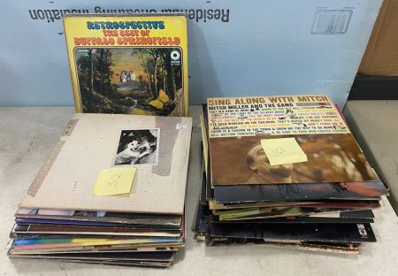 65 Record Albums, 12", covers, assorted style music. Location Front Left Black Metal Shelves. 65 Record Albums, 12", covers, assorted style music. Location Front Left Black Metal Shelves.