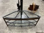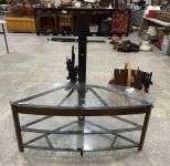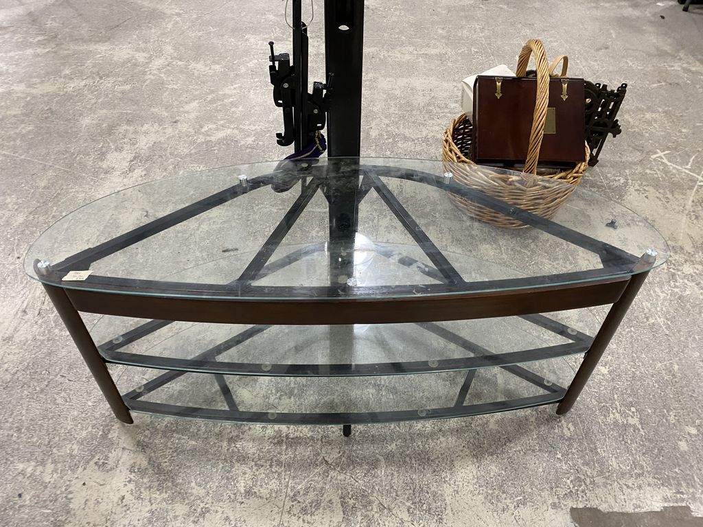 Flat Screen Tv Stand, three glass shelves, 51"h., 50"w. Location Left Office. Flat Screen Tv Stand, three glass shelves, 51"h., 50"w. Location Left Office.