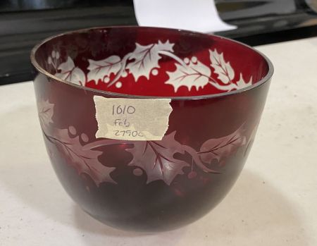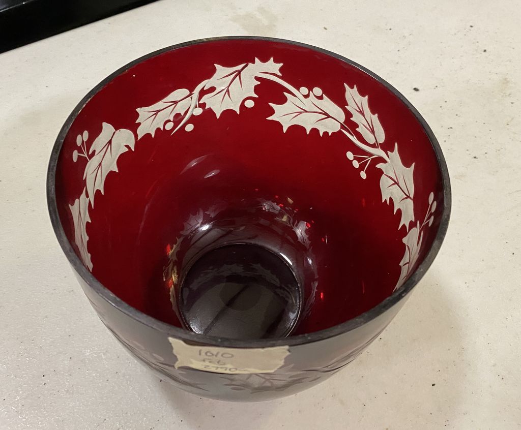 Christmas Red Cut to Clear Bowl 5"h., 6"dia. Location Back Metal Cases Christmas Red Cut to Clear Bowl 5"h., 6"dia. Location Back Metal Cases