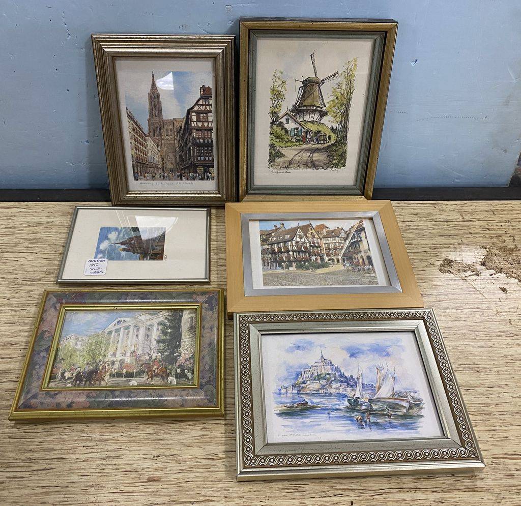 6 Small framed prints, some pencil signed, 9"h., 7"w. Location Right Metal Shelves. 6 Small framed prints, some pencil signed, 9"h., 7"w. Location Right Metal Shelves.