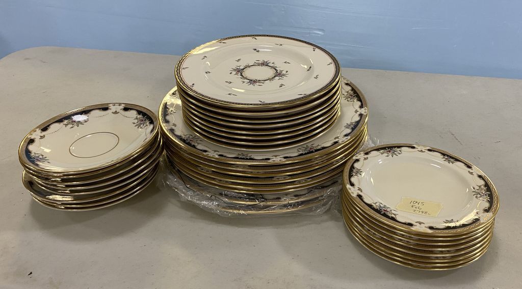 Leno "Hartwell House" China Set, 8 dinner, 8 salad, 8 saucers, 8 desserts. Leno "Hartwell House" China Set, 8 dinner, 8 salad, 8 saucers, 8 desserts.