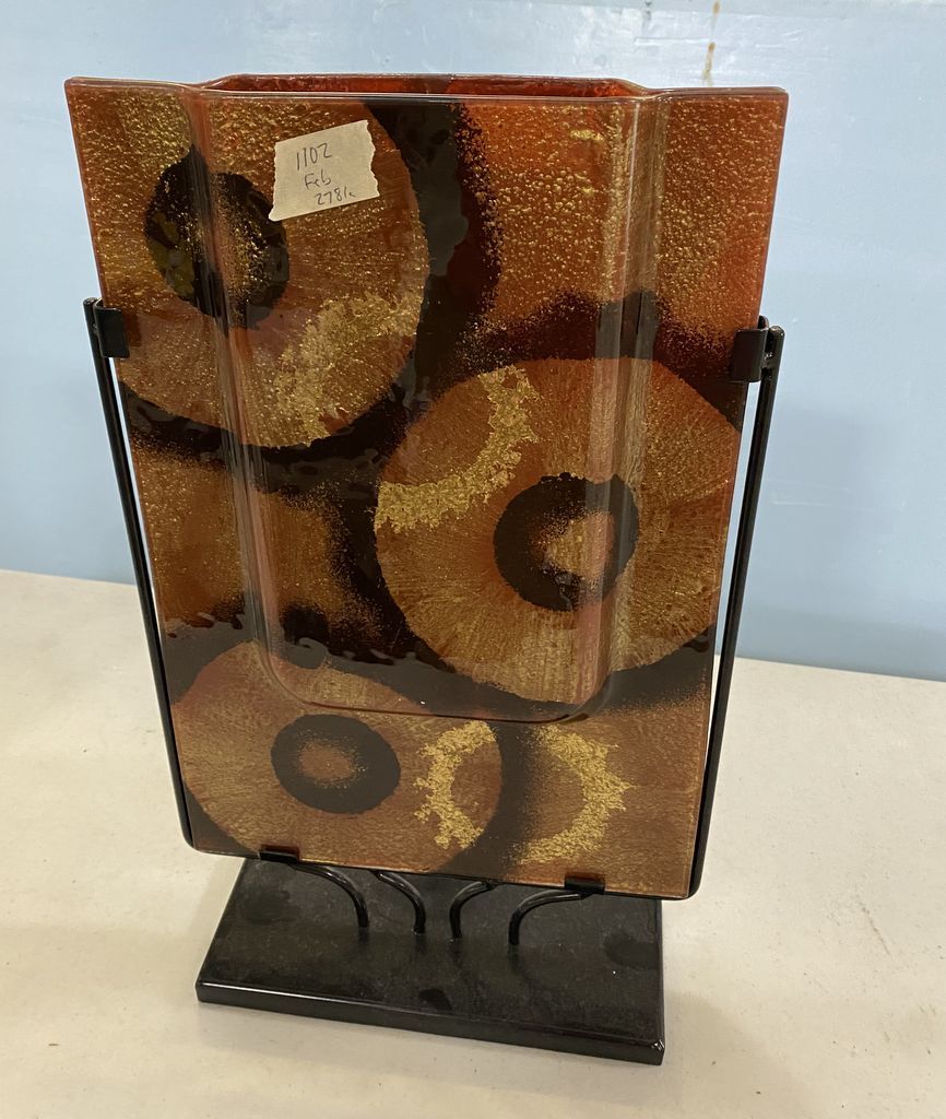 Art Glass Planter, metal stand, 18"h Art Glass Planter, metal stand, 18"h