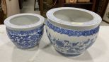 1175 Two Blue and White Asian Porcelain Planters
