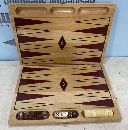 Wood Backgammon game, dice and marble piece, Location Back Metal Cases Wood Backgammon game, dice and marble piece, Location Back Metal Cases