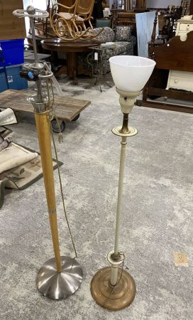 Small Torchiere Floor Lamp with milk glass shade, and Contemporary style lamp, no shades, Location 5th Row Small Torchiere Floor Lamp with milk glass shade, and Contemporary style lamp, no shades, Location 5th Row