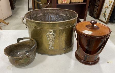 Brass Buckets and Wood Ice Bucket. Left Plastic Storage Racks. Location Right Back Black Metal Shelves. Brass Buckets and Wood Ice Bucket. Left Plastic Storage Racks. Location Right Back Black Metal Shelves.