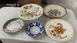 1236 Four Pottery Serving Bowls and Antique Hand Painted Plate