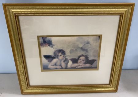 Decorative Print Cherubs, matted, gold gilt framed. Location Art Back Wall Decorative Print Cherubs, matted, gold gilt framed. Location Art Back Wall